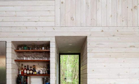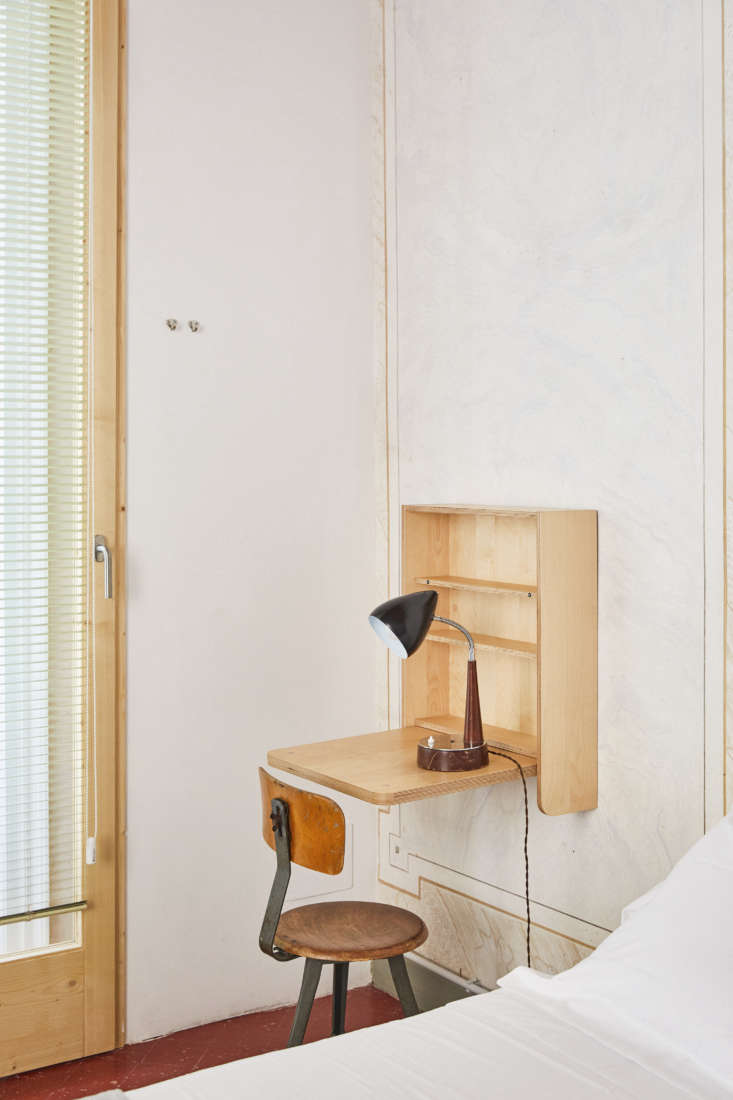 Above: A folding desk and shelving was made custom from Marine-grade plywood.
