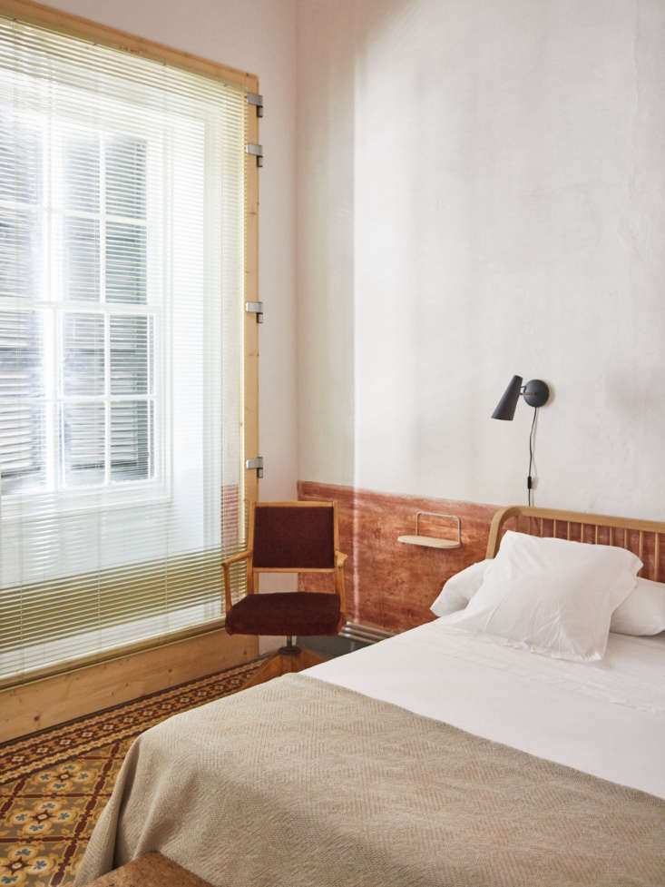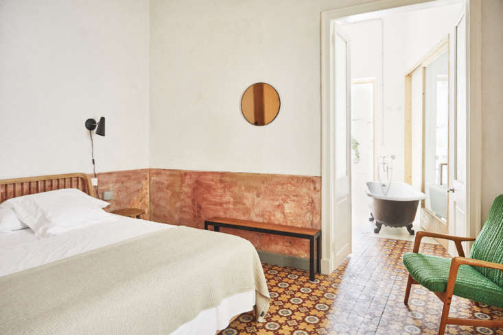 Above: The pink paint on the lower half of the bedroom walls is original to the building.
