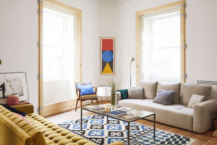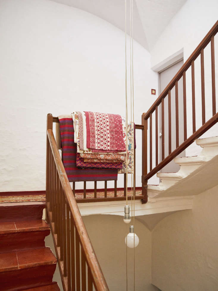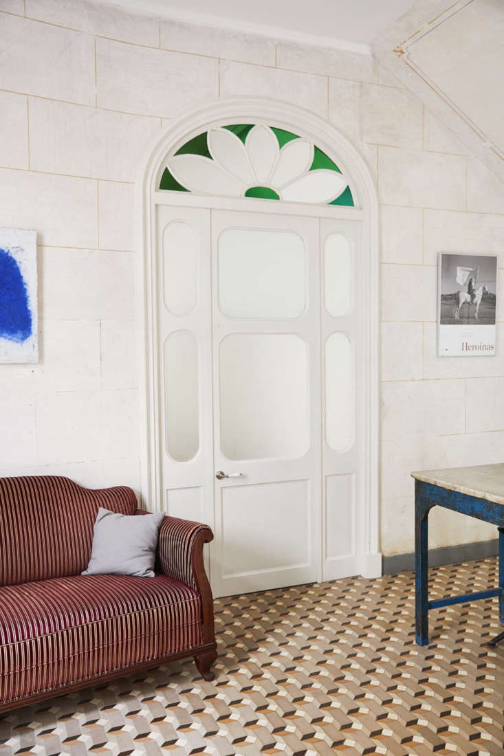 Above: The colorful geometric mosaic cement floor tiles are original to the building, from the end of the 18th century. The style, Ignasi explains, is typical to the historic homes of the region, once owned by the bourgeoisie, merchants, and clergy of Maó.