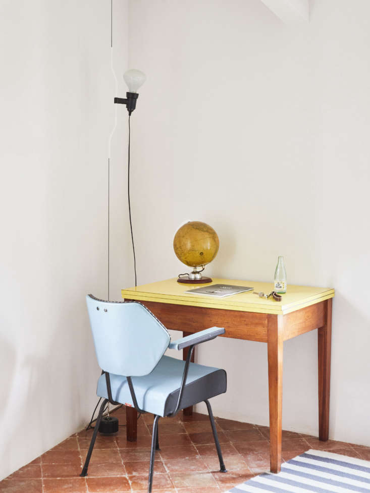Above: The desk is a vintage 1960’s piece from Lannion in Brittany, and the chair, too, is vintage, sourced from Amapola Antiques in Madrid. The lamp is the Flos Parentesi Floor Lamp in white.