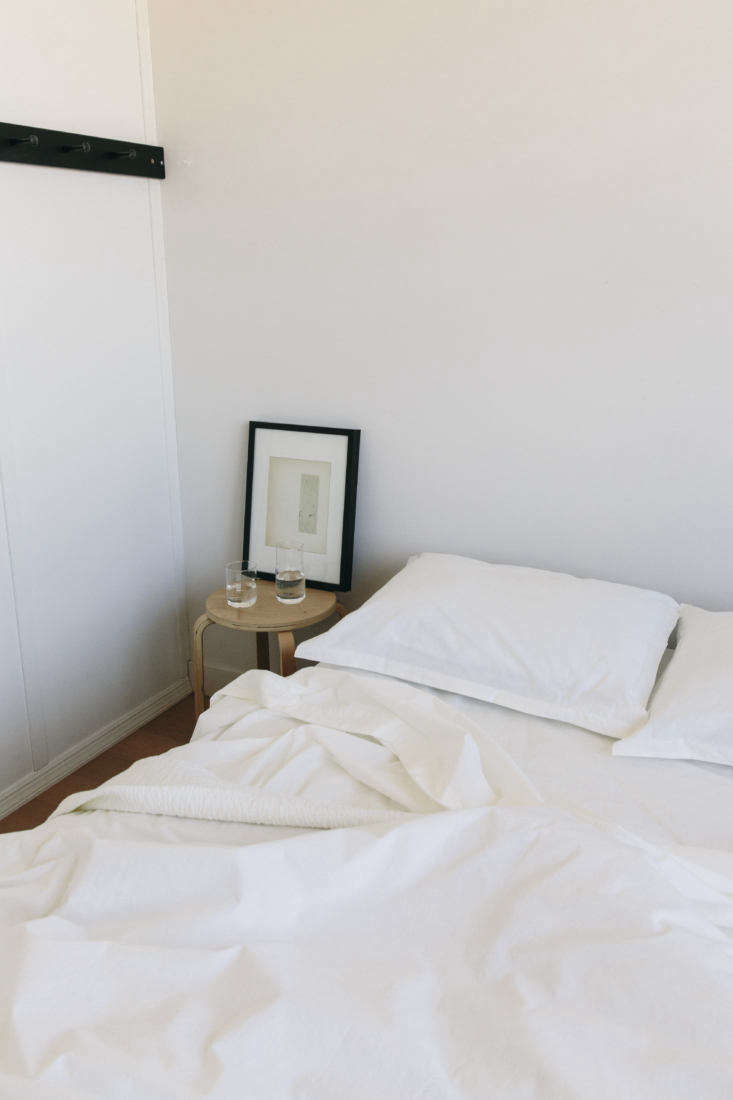 Above: The term “luxury sheets” makes me think of silky textures and frilly detailing. I like the simplicity of this bedding: well-made but unadorned, and fitting for my pared-back bedroom.