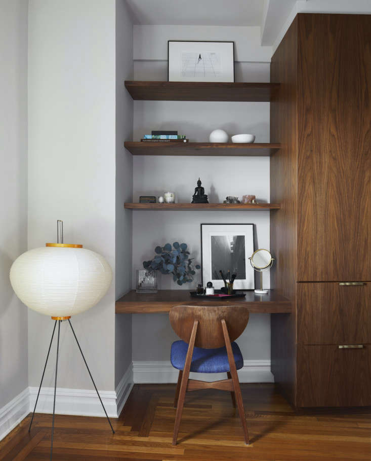 Above: The firm designed the custom walnut closets. The floor lamp is a Noguchi. (See 11 Times Noguchi Lamps Stole the Spotlight, Plus 5 to Buy.)