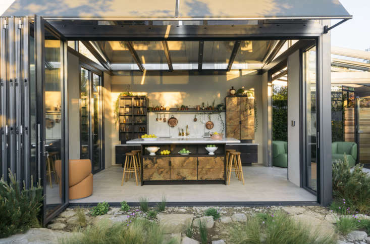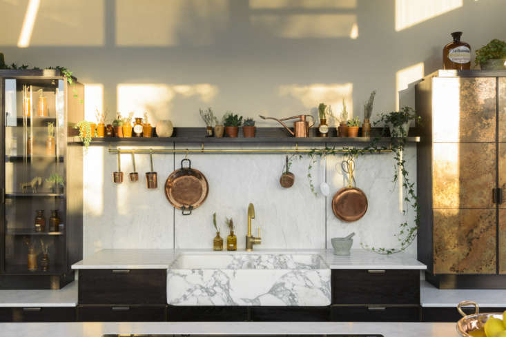 A surprise star at the recent Chelsea Flower Show in London: a kitchen oriented to the garden. Set in an energy-efficient Passive House conservatory, the design intrigued us thanks not only to its cabinet doors of patinated copper but also its exotic pedigree: It was created by UK kitchen titans Charlie Smallbone (formerly of Smallbone of Devizes) and Paul O’Leary (of deVol) working for the first time in collaboration. Come see.