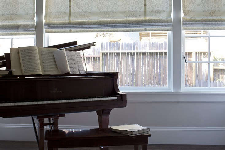 Tang, who lives in a pre-war building in Brooklyn, covered his own windows with custom cut shades from Home Depot. “They have a valence; I live in a very traditional house where that sort of detail is appropriate to the architecture.”