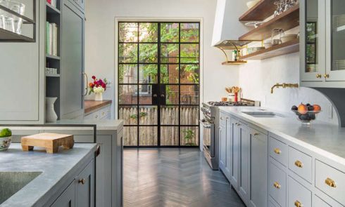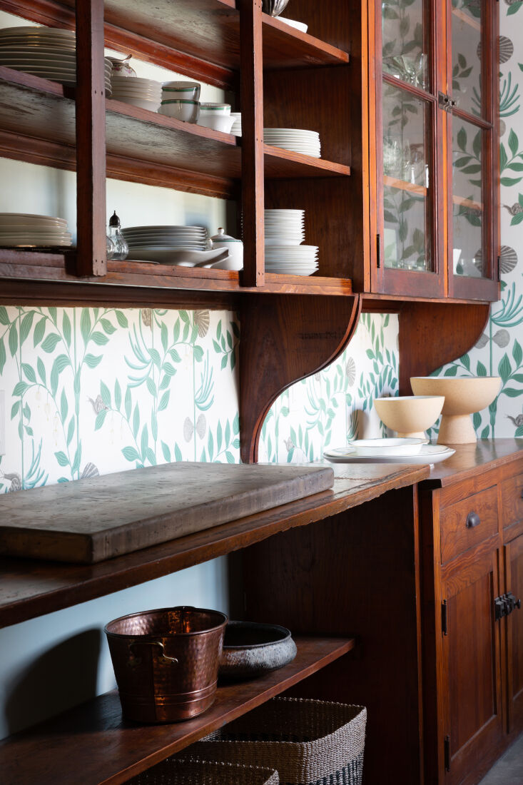 She and Chris asked Jess and team for an all-new setup that “looked as if it had always there.” “The challenge,” says Jess, “was to balance modern functionality with a historied aesthetic and relevance to the rest of the house.” Join us for a look at the results—and scroll down to see the preserved, newly wallpapered pantry.