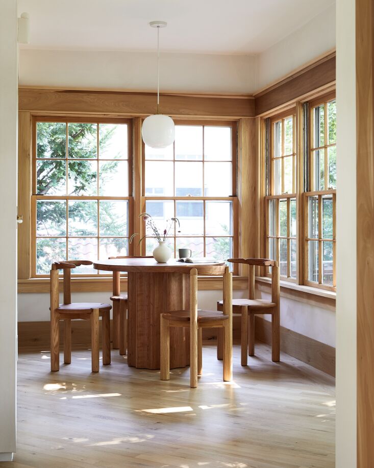 Above: TBo designed the breakfast nook’s staved cherry table fabricated locally by Gary Morgen of Morgen Woodwork. The Zitsn 2 chairs by Aidan Elias are from Lichen. The light is the Radiohus Pendant.