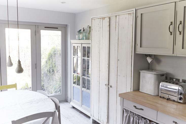 Above: Hutchinson adds an antique larder cabinet into the mix.