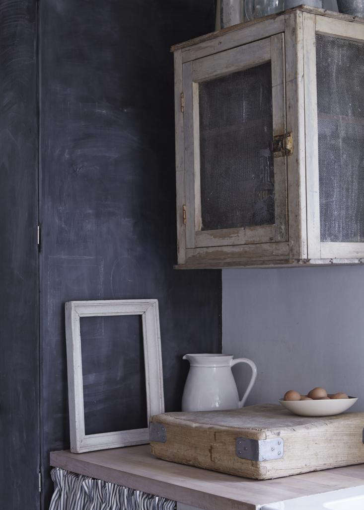 Above: A tall cupboard has been painted with chalkboard paint (the washing machine and the boiler are hidden behind its doors).,