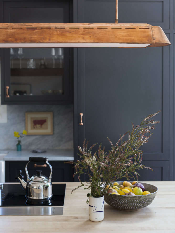 Above: The island is lit by Piet Hein Eek’s TL Suspension Light in copper.