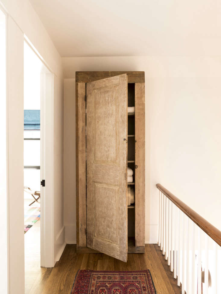 Above: Bestor “cleaned up the second floor hall”—in addition to the master suite, she created a guest bedroom and bath—and the Carters supplied this 18th century linen cupboard.