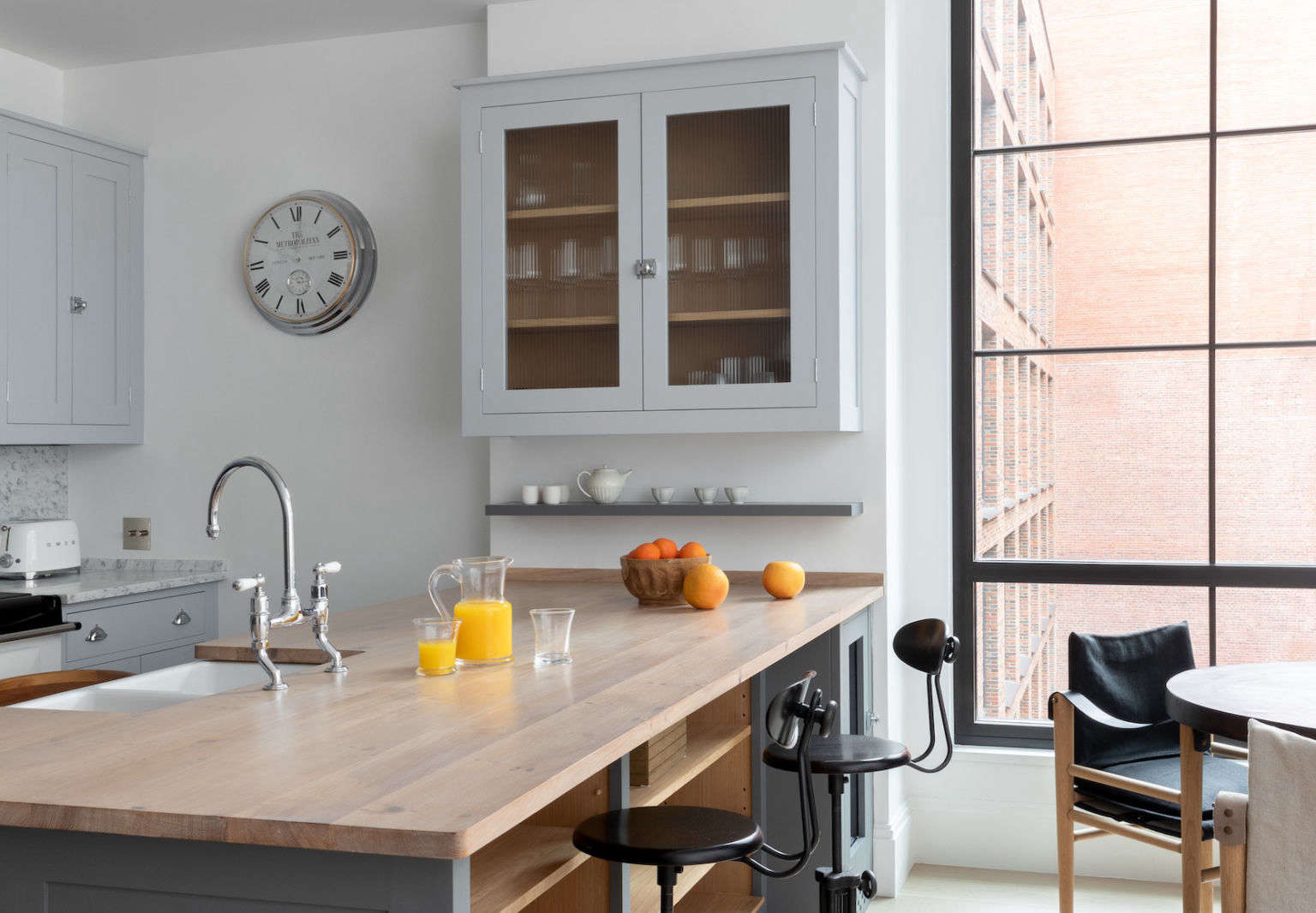 “The clients were looking for a feeling of their London home when away from home. They wanted to create warmth in a white box, while also ensuring the kitchen didn’t feel like fitted cabinets but rather pieces of furniture,” says Plain English’s design director, Merlin Wright. “They wanted a space for family breakfasts at the weekend and also a functional space for having a coffee or a piece of toast before running out of the door on weekdays.”