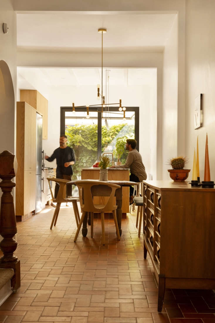 Above: The kitchen, dining, and living rooms comprise the second floor. The terracotta tiled floors are new but replicate the original flooring in the kitchen.
