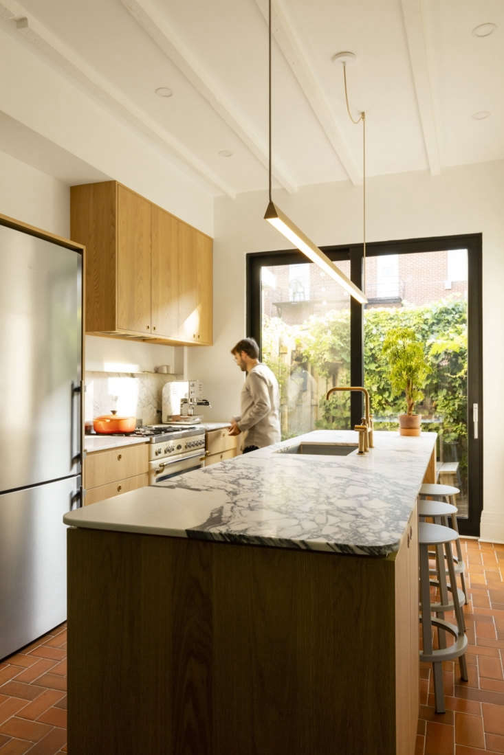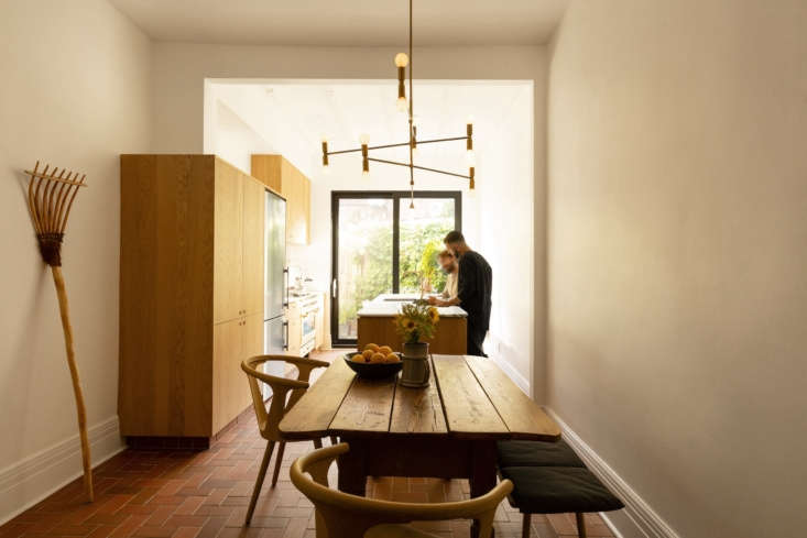 Fortunately, the architect, Michael Godmer, was more than up for the challenge. It was his house, after all. Michael shares the sliver of a home—three stories tall but skinny as can be—with his partner Mathieu Turgeon. The two had originally planned on overhauling only the kitchen, but then, in Michael’s words, “we began to scrap everything including the exterior.”