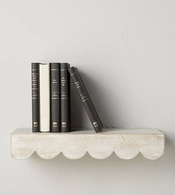 Above: Anthropologie’s white-washed Scalloped Shelf, $78, is 18 inches long and 8 inches deep. Find others like it on Etsy.