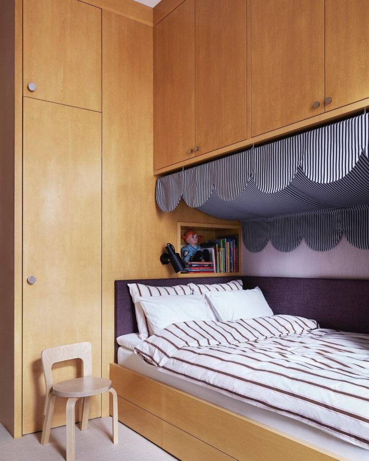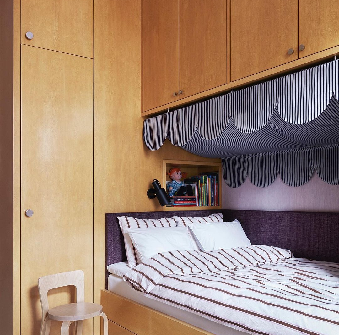 Above: Striped scalloping crowns a built-in bed in a kid’s room by Stockholm interior designer Daniel Östman.  Photograph courtesy of Daniel Östman Interiors.