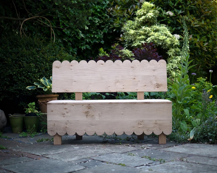 Above: London furniture makers Bibbings & Hensby’s Scalloped Bench is reminiscent of antique Spanish and Mexican designs.