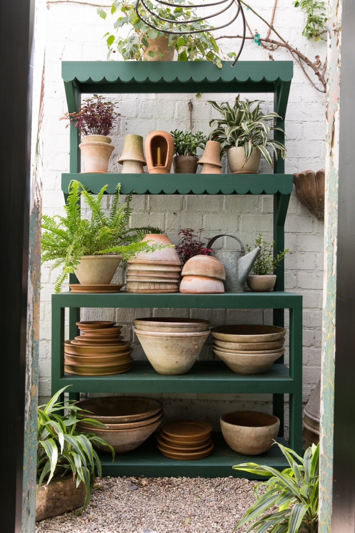 Above: A painted pine Potting Table by LA interior designer-shopkeepers—and stars of scalloping—Nickey Kehoe. Photograph by Timothy Ragan, courtesy of Nickey Kehoe.