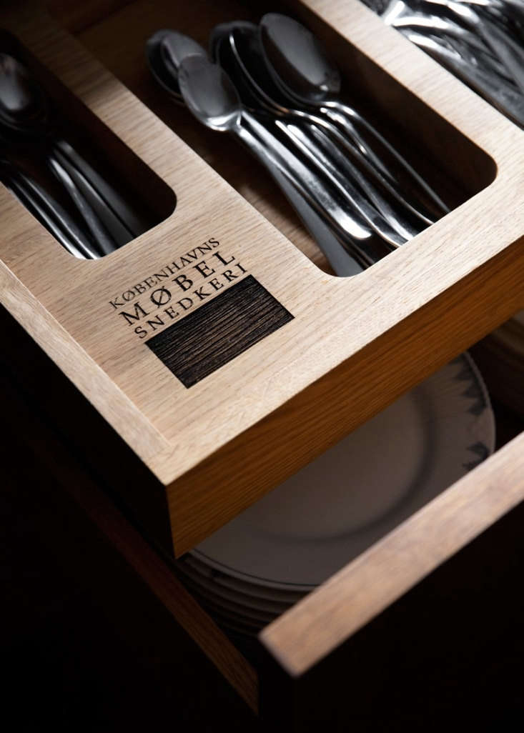 Above: Custom cutlery drawers are one of KBH Københavns Møbelsnedkeri’s signature touches.