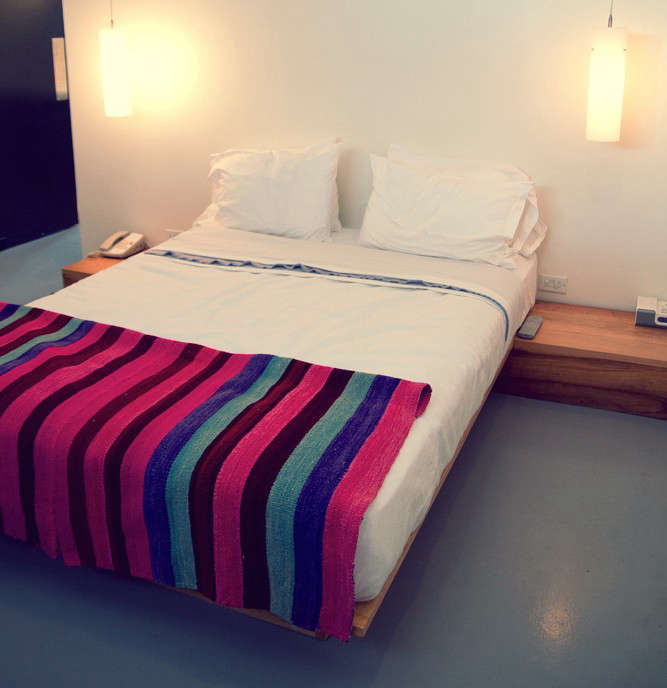 Above: Thunderbird Hotel in Marfa, Texas, offers its own, made-in-India, 100 percent cotton sheets. The Hotel Cotton Sheet Set includes four pillowcases and two flat sheets for $150.