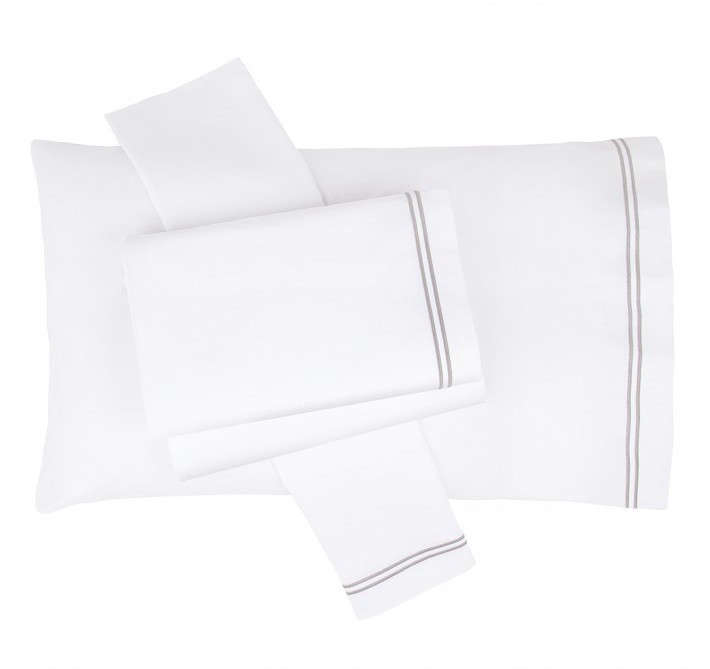 Last: At the NoMad Hotel in New York, beds are covered in linens by Sferra–a nearly 125-year-old Italian company whose sheets have graced beds from the Vatican to the White House. Its 200-thread-count Grande Hotel Collection is available in ivory or white sheets with 16 stitch trim colors; a queen set is $363.
