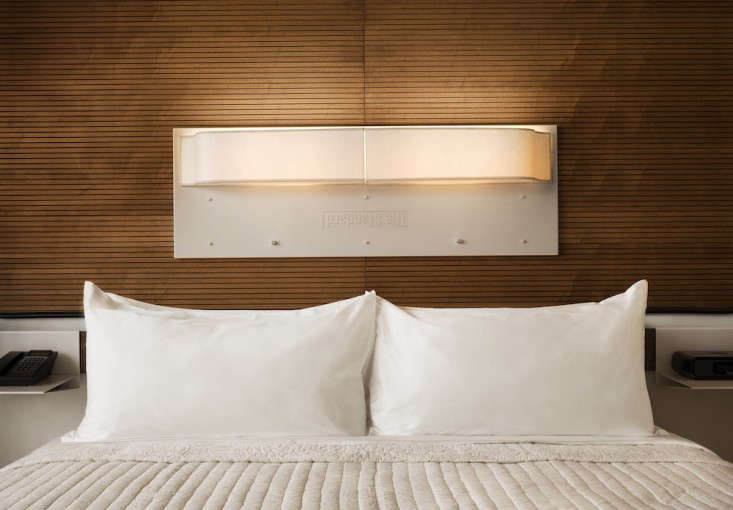 Above: At the Dean Hotel in Providence, Rhode Island, beds are outfitted with linens by Matouk, a family-owned company in nearby Fall River, Massachusetts, that Julie is a fan of. We like the Luca line made of 500-thread-count cotton woven in Italy. A queen-size set is $537.
