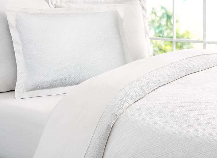 Above: Pottery Barn offers a range of Portuguese Reeve Matelasse organic bedding; the full/queen Reeve Duvet Cover is $149 and the Reeve Sham is $49.50. N.B.: This post is an update; the original ran on May 5, 2017.