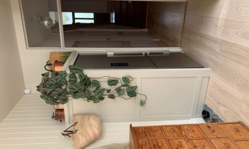 Commune partner Steven Johanknecht oversaw the renovation. “Because the space is so compact, I designed it with lots of built-in millwork to unify the rooms,” he told us. “The oak and tile used in the living room are carried into the kitchen and beyond. It’s almost like a luxury cabin on a train or ship.” As for the LA-Paris combination, Franck says, “Both cities are such a huge part of our DNA, personally and professionally, so there was a conscious effort to include a California sensibility in this authentic Paris garret.”