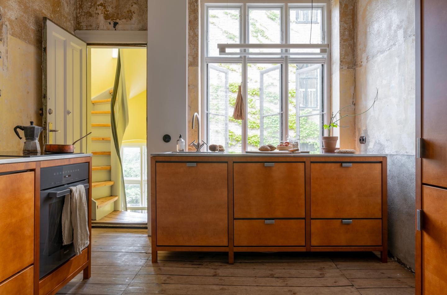 A decade or so ago, when Niels Strøyer Christophersen founded his celebrated Copenhagen design firm, Frama, he used his living quarters in a restored 1905 watchmaker’s shop as a showcase for his studio’s work. Extolling natural, unpretentious materials, ease of use, and reverence for the old, Christophersen went on to created refreshingly simple elements for the home, including his own kitchen out of parts found on the street. It served as a model for Frama’s initial kitchens composed of freestanding, wood-framed components.