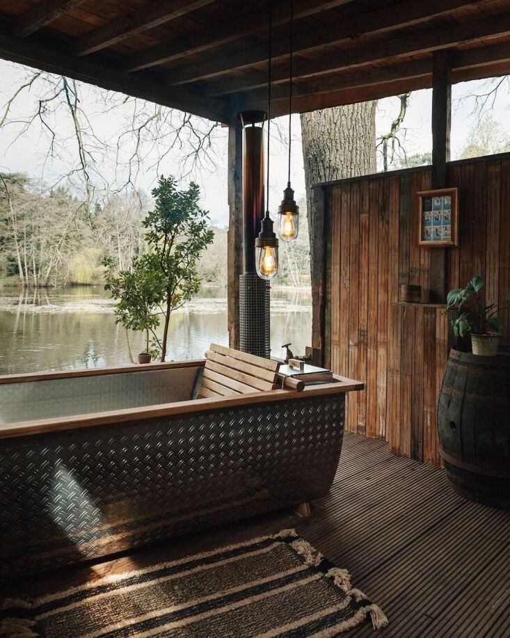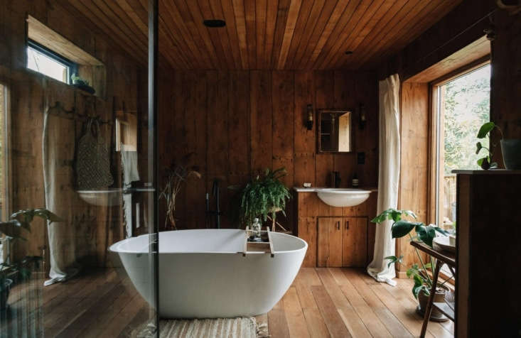 Above: For nature-watching while steeping: made by Hikki of Sweden, Bohemen is a combination bathtub/hot tub with room for two adults and two kids. It’s made of oak and aluminum, and Jo says is easy to heat: “fill with water and light the fire in the wood chamber until it reaches your desired temperature.”