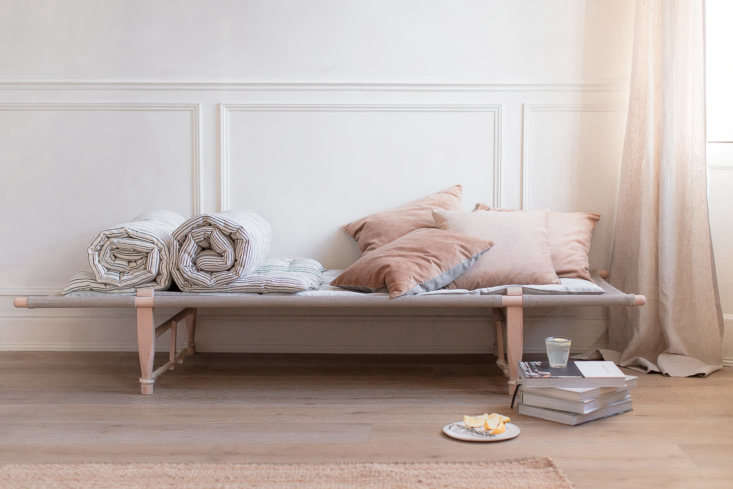 Above: Kapok bedrolls and Kirsten Hecktermann pillows on the OGK Safari Daybed, designed in 1962 by Danish architect Ole Gjerlov-Knudsen when his son was going on a camping trip. (It’s available in the US from Nordic Design Ambassador/Model Camilla Vest.)