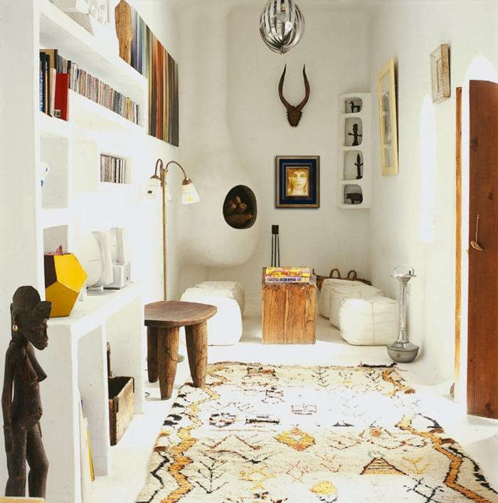 Wilson and Carter visited this Northern African kingdom at different times in their lives, and independently fell in love with the exotic land. So when these two Londoners later met, it was only a matter of time before they quit the colder Northern city to take up residence in the sunny coastal village of Essaouira. There, the new expats bought a dilapidated 200-year-old villa, Dar Beida, which they spent two years renovating into a contemporary Moroccan guest house. Applying their knowledge of modern design (they ran a retro furniture shop in London), while at the same time restoring much of the original Moorish structure, they completely redesigned the four-story dwelling. The result is a rare and seamless blend of their native and adopted countries: western modern and traditional Arabic, with some ethnic African thrown in.