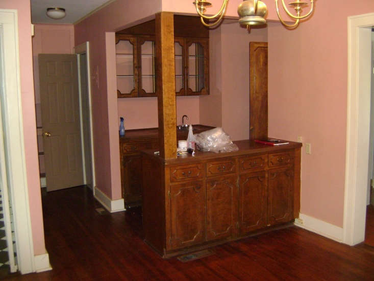 Above: A 1940s wet bar was replaced by our guest bathroom. We closed the hallway and added a laundry room, accessed from the kitchen. The laundry room leads to our garage, which previously was a living room.