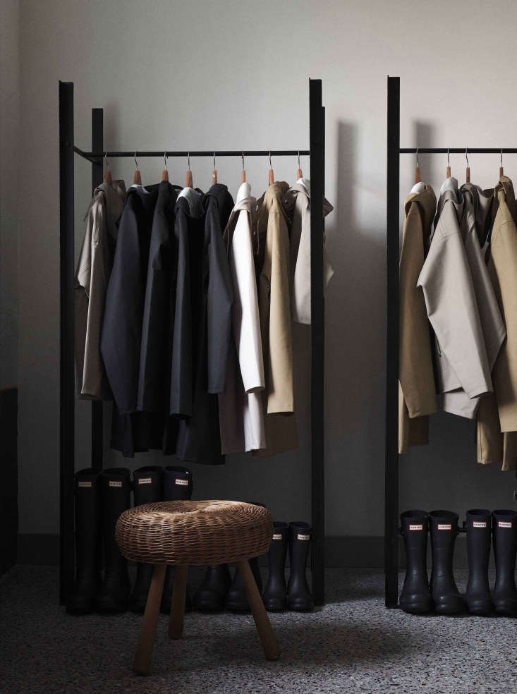 Above: The mudroom at Wanås is stocked with Stutterheim raincoats and Hunter boots for guests to wear around the estate.