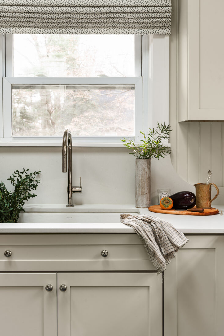 By the time clients have completed all of her onboarding requests, she has everything she needs to deliver a highly personalized redesign. For this sweeping kitchen remodel for a young couple in Maplewood, NJ, Hollie honed in on their love for “Cotswold charm” and “Japanese simplicity.” The two spent much of Covid lockdown in the English countryside (he is British) and both are drawn to Japanese design. Additionally, Hollie was inspired by the show-and-tell objects they brought to their design meeting, another of her get-to-know-you assignments; he chose his Leica film camera for its simple functionality and she selected a cherished glazed Majorca pottery vessel for its timeless, rustic appeal.