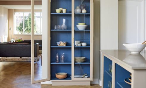 “This kitchen was designed to show how simple modular Shaker cupboards in standard sizes painted in one of our standard colors can be transformed into an atmospheric and authentic room with color and beautiful things,” says creative director Helen Parker. “[It’s] designed to transport you to a French country kitchen in the height of summer.”