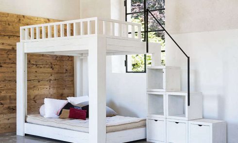 Above: The white oak cabinets are painted Blanc 32001 from the Le Corbusier Polychromie Architecturale collection from Drikolor.