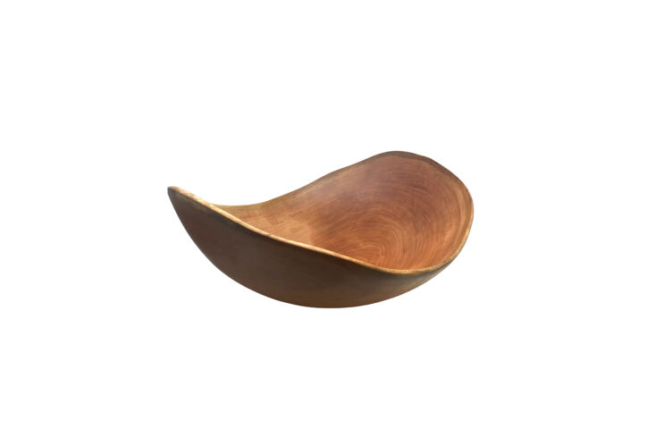 Above: A similar curved wooden bowl is the hand-carved Andrew Pearce XXL Live Edge Oval Wooden Bowl in Black Walnut; $2,300 at Andrew Pearce.