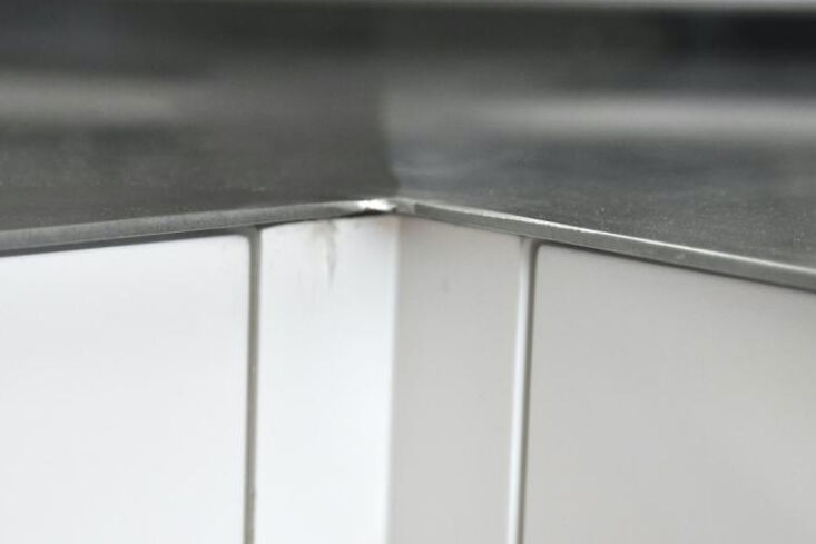 Above: The countertop is custom stainless steel. For more on stainless steel as a countertop material, see our post Remodeling 101: Stainless Steel Countertops.