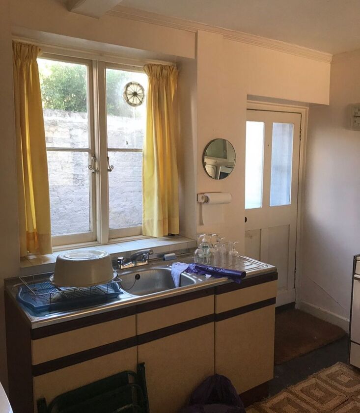 “I ported over a mortgage from the sale of my last property,” says Russell. “It was a gamble but felt worth it as the resale would far outweigh any issues the house might have—or so I thought. I had a middle-rate survey done, but because the house was covered in layers of paneling, lino, carpets, etc., they couldn’t detect the rot, and the external structure was sound.” One month into the work—after the new kitchen had been installed—plumbers putting in pipes found live woodworms and crumbling rafters. “It turned out that the inside of the house was essentially a broken umbrella: there was nothing holding the rafters to anything,” Russell told The Modern House offshoot Inigo. “The roof and every support, ceiling, and floor had to be replaced: our renovation budget was completely blown.” Throwing in the towel didn’t feel like an option—the house wasn’t salable as it was, so Russell refinanced his mortgage, took out bank loans, maxed out his credit cards, and carried on.