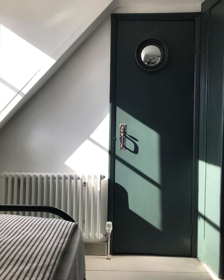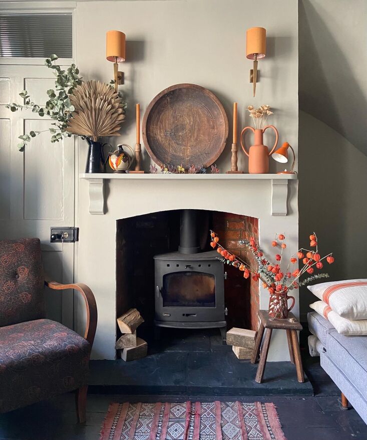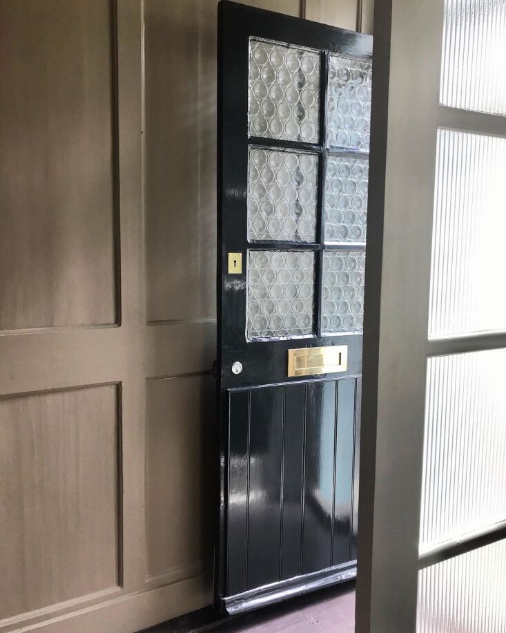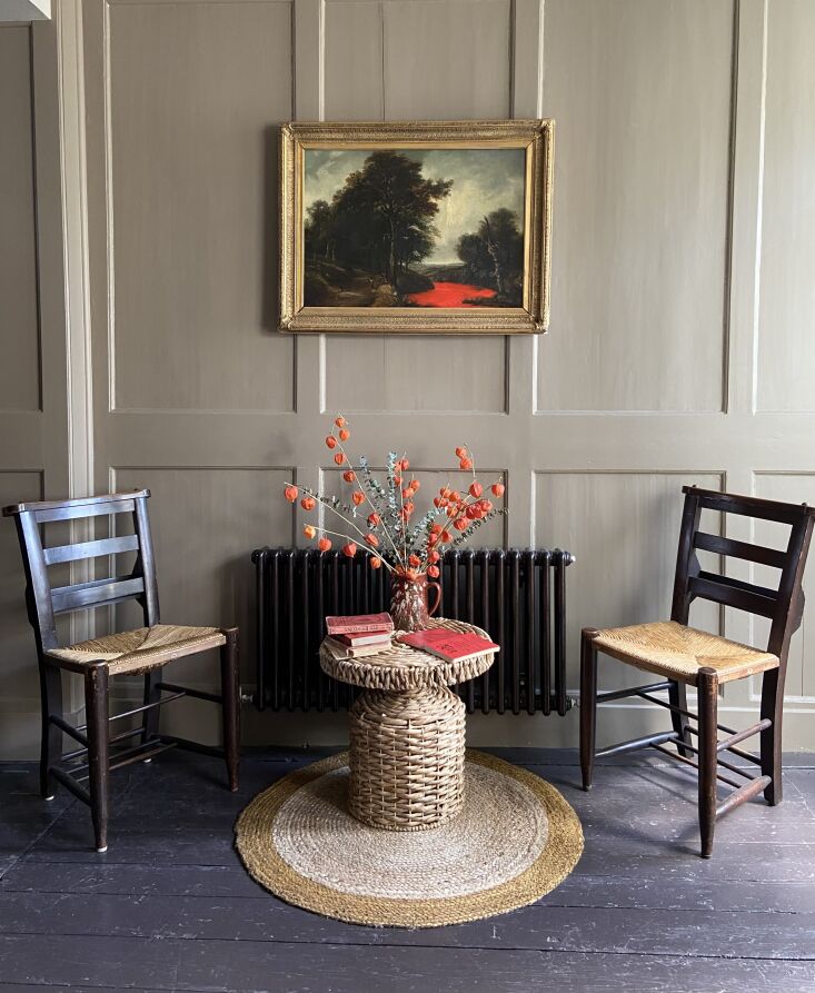 Above: The paneling is painted Hardwick White, a warm gray that Farrow & Ball created “to touch up the limewash at Hardwick Hall,” a 16th century National Trust estate in Derbyshire.