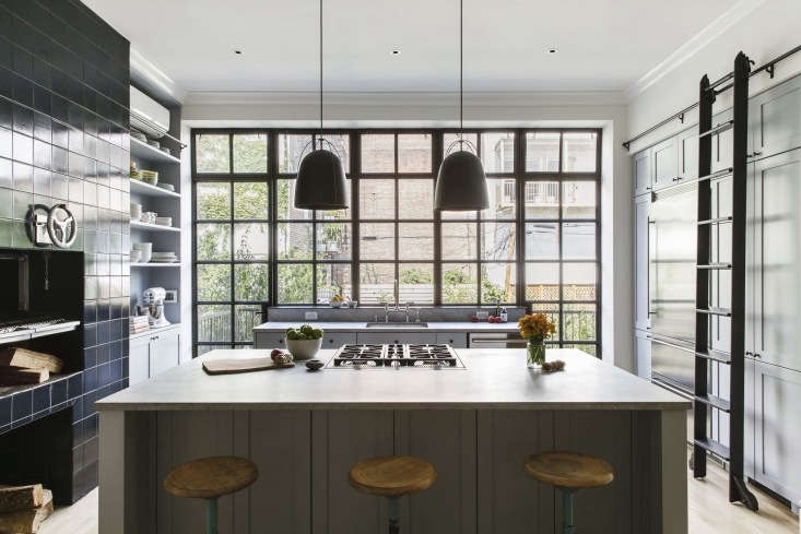 Above: In a Brooklyn kitchen, Elizabeth Roberts added a wall of cabinetry accessed via a rolling ladder from Rolling Ladders. For more, go to Brooklyn Revival: A Bright and Open Family House. Photograph by Dustin Aksland, courtesy of Elizabeth Roberts.