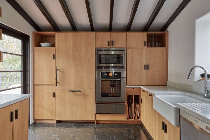 Above: In a house in LA’s Los Feliz, designer Tamar Barnoon reconfigured an outdated kitchen, adding a wall of cabinetry that conceals the fridge and other appliances (note the slots for cutting boards); see more at Kitchen of the Week: In Los Feliz, a Moody, Romantic Spanish Modern Update. Photograph by Laure Joliet.