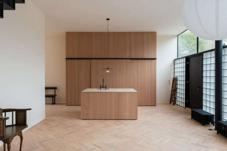 Above: In a project by Frame, a design-led property firm founded by architects Nick Mansour and Hugo Braddick, all kitchen storage is concealed in built-in floor-to-ceiling cabinetry. See more at A London New-Build Inspired by the Iconic Maison de Verre.