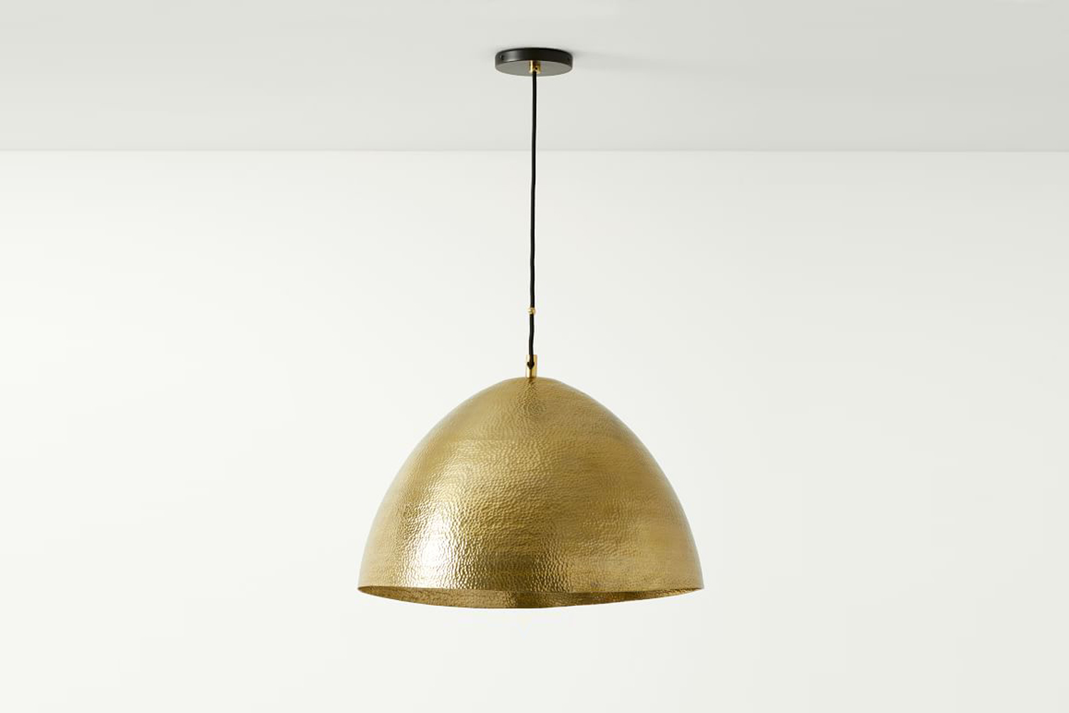 Above: The Hammered Metal Pendant in Antique Brass is $299 at West Elm.