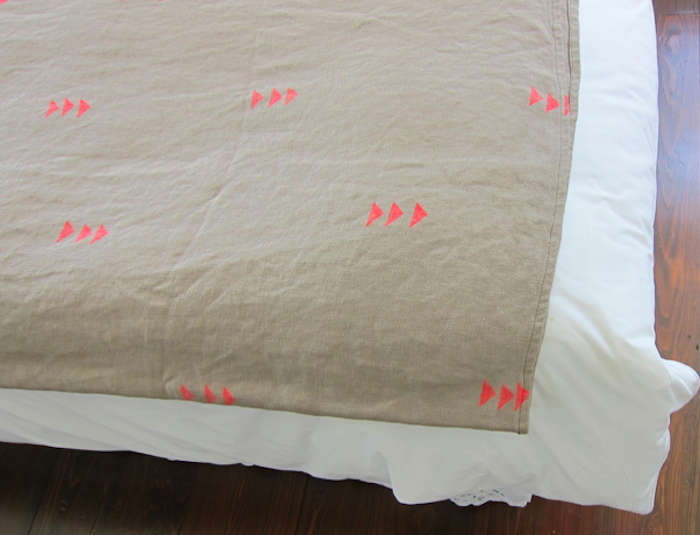 Above: A detail of the blanket shows the block-printed arrow pattern that Hurley creates by hand using non-toxic acrylic ink.