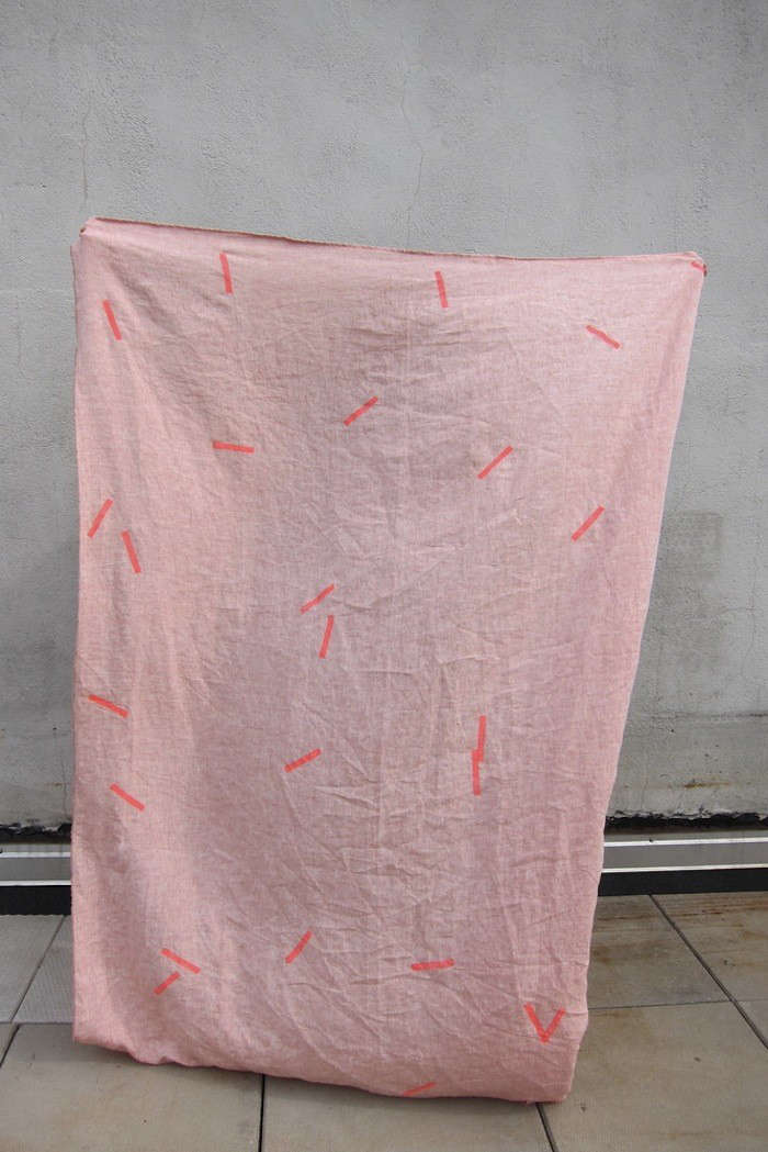 Above:  The Pick Up Sticks Linen Throw is available in sherbet pink for $140 at Caroline Z Hurley.