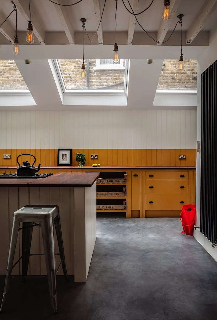 Above: Interior designer Lonika Chande painted this new kitchen in multiple coats of Paper & Paint Library’s “Indian yellow” Muga in a glossy finish. See the project in A London Designer’s Remodel for a Demanding Client (Her Mother). Photograph by Simon Brown.