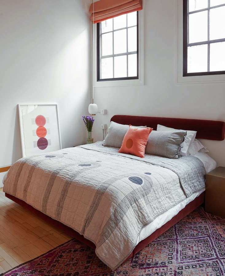 Above: The Sunwave Quilt was inspired by a Kenneth Noland target painting, and has classic pinstripes on the flip side.