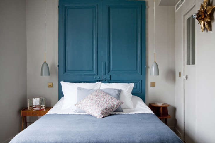 Above: Well placed–this alcove bed at the Hotel Henriette in Paris has just enough room for wall space on each side and two bedside tables.