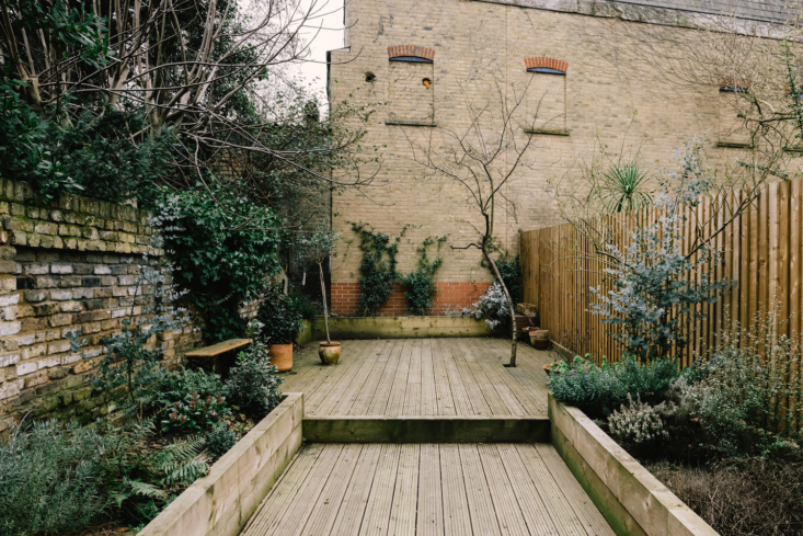 Above: Decking extends across the small backyard, surrounding a plum tree.